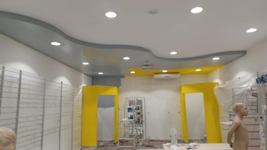 si occupa della realizzazione di controsoffittature anche con impianto di illuminazione, e di lavori in cartongesso in genere, come la posa di muri divisori e penisole per cucine.